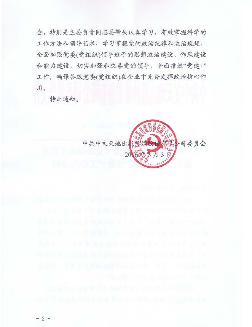 中文传媒党委字〔2016〕2号关于印发《中共中文天地出版传媒股份有限公司委员会关于全面推进“党建%2B”工作的实施方案》的通知