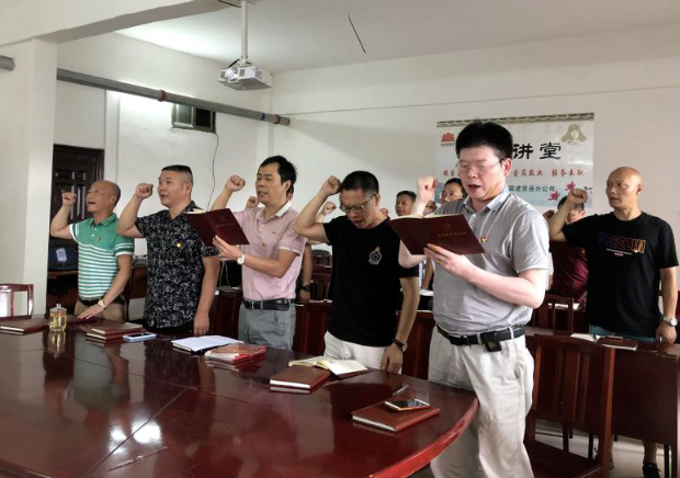 进贤县分公司党支部党员干部们集中开展重温入党誓词活动。在鲜红的党旗下,党员们庄严地举起右手,握拳宣誓,重温入党誓词。此次活动使分公司党员干部们再次接受了心灵的洗礼,铭记庄严的承诺,牢记共产党员的政治责任、工作担当和光荣使命,引导党员自觉增强四个意识,坚定党员对党的事业奋斗终身的决心和愿望,以更加饱满的热情投身到工作岗位。