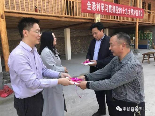 11月9日,奉新县分公司还联合县文广新局、县图书馆开展了十九大政治读物送书下基层活动,专程前往县内涴溪村、桥头村和金港村等基层一线,将十九大文件及相关辅导读物送到当地党员干部群众手中,共同开展了多形式、多层次、全覆盖的学习活动,深入贯彻习近平总书记提出的新时代中国特色社会主义思想,不忘初心,牢记使命,为今后各项工作的开展指明了方向。