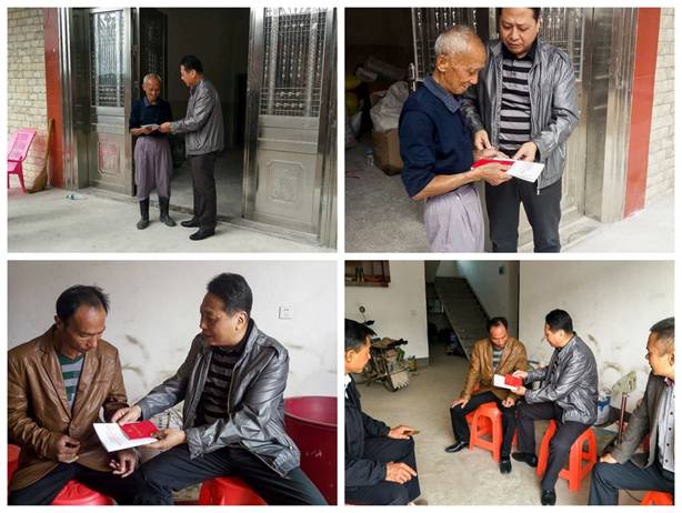 宁都县钓峰乡桃源村是宁都县分公司的精准扶贫定点帮扶村,为使村内党员群众能在第一时间学习到十九大精神,县分公司精准扶贫工作队携带十九大报告、党章等政治读物来到村庄,为当地党员群众送书上门。