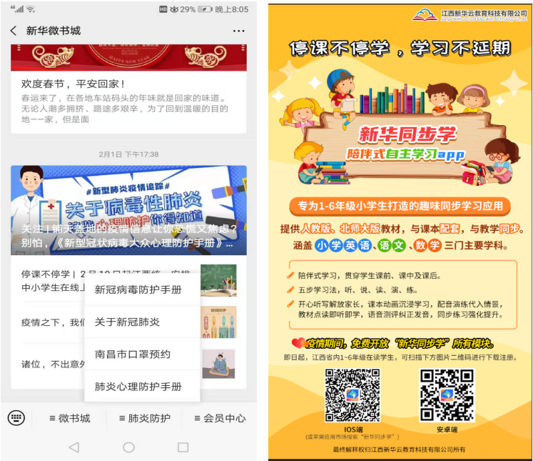 将通过国家教育部备案的“新华同步学”自主学习APP中的优质在线学习辅导资源向社会免费开放,确保广大中小学生“停课不停学,学习不延期”。
