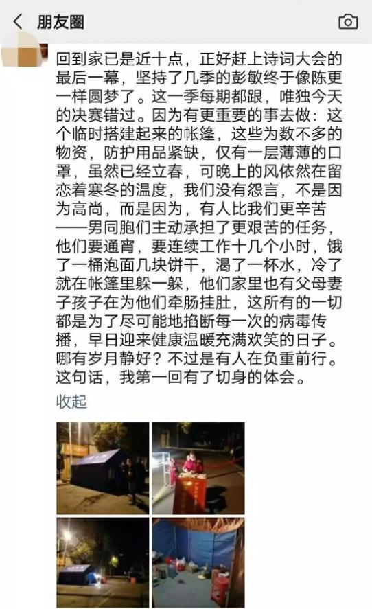 其中,一位女员工在深夜值班回到家后,写下了这样一段动情的文字---