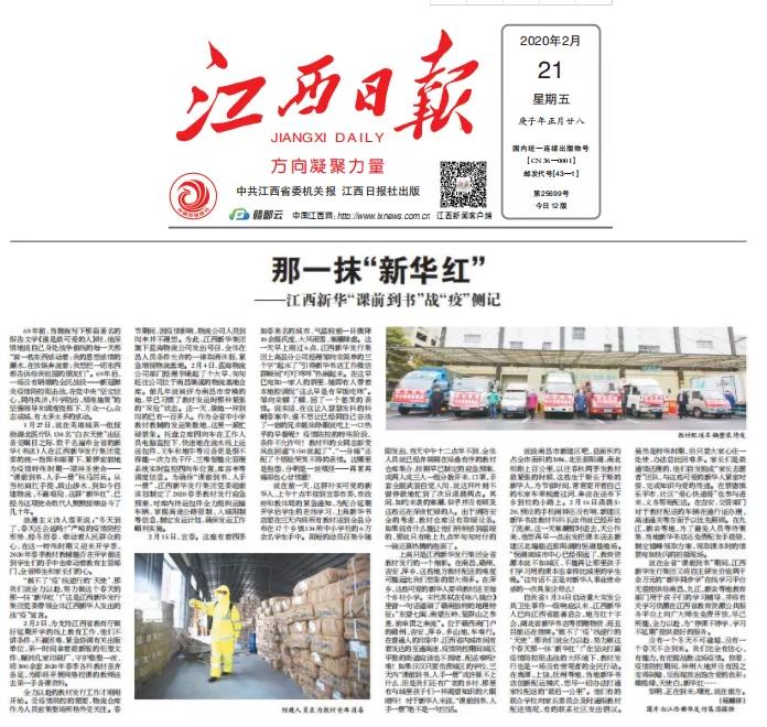 又将自主研发价值两千余万元的“新华同步学”在线学习平台无偿提供给南昌、九江、新余等地教育部门用于孩子们的学习辅导,并将有关学习资源在江西省教育资源公共服务平台上向广大师生免费开放,尽己所能、全力以赴,为“停课不停学,学习不延期”提供最好的服务。